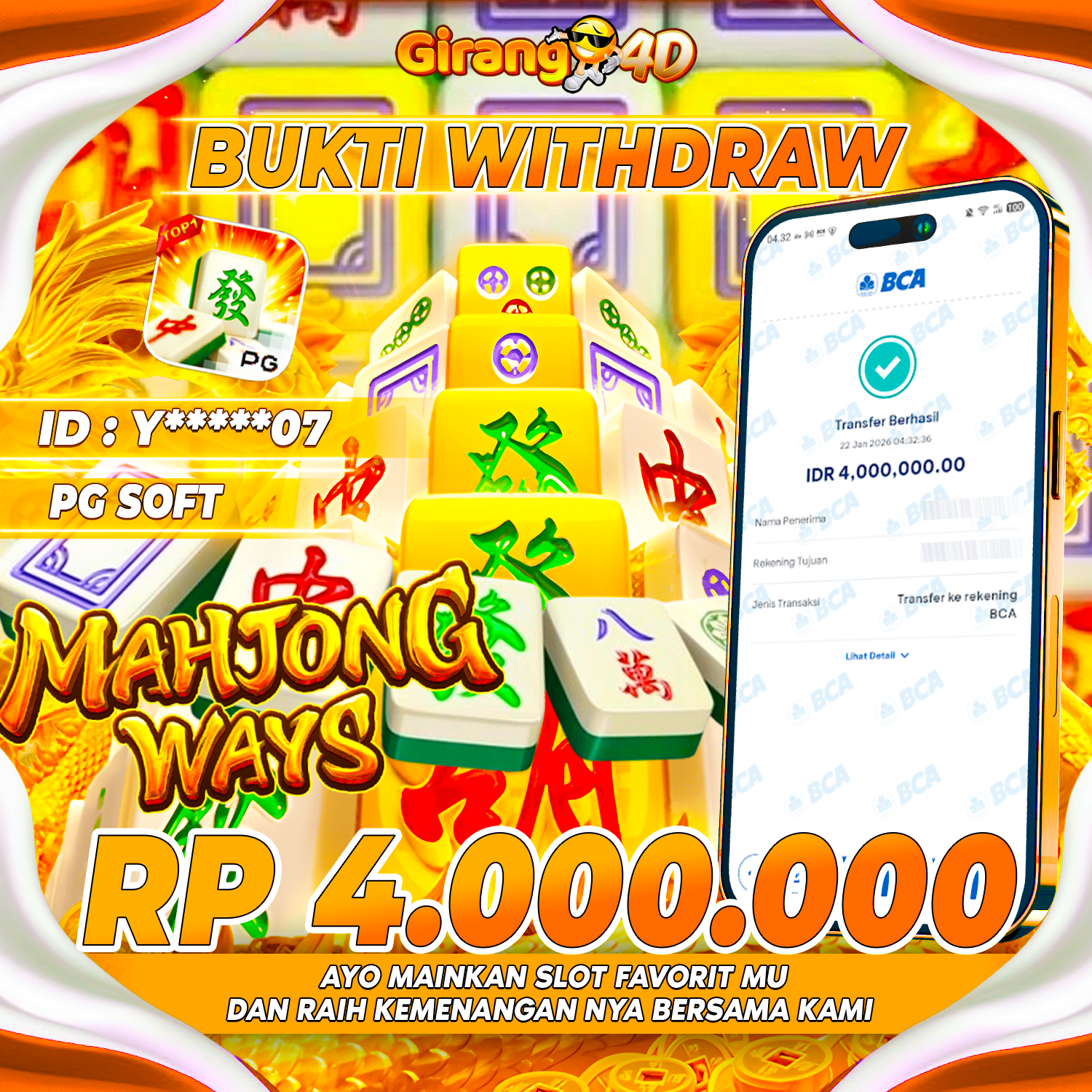 GIRANG4D Bukti Kemenangan SLOT MAHJONG WAYS Selamat Kepada Id : Y*****07 Atas Withdraw R .4.000.000 Hari ini. Ditunggu Withdraw Selanjutnya dan ajak juga teman temannya bergabung di GIRANG4D GIRANG4D adalah…