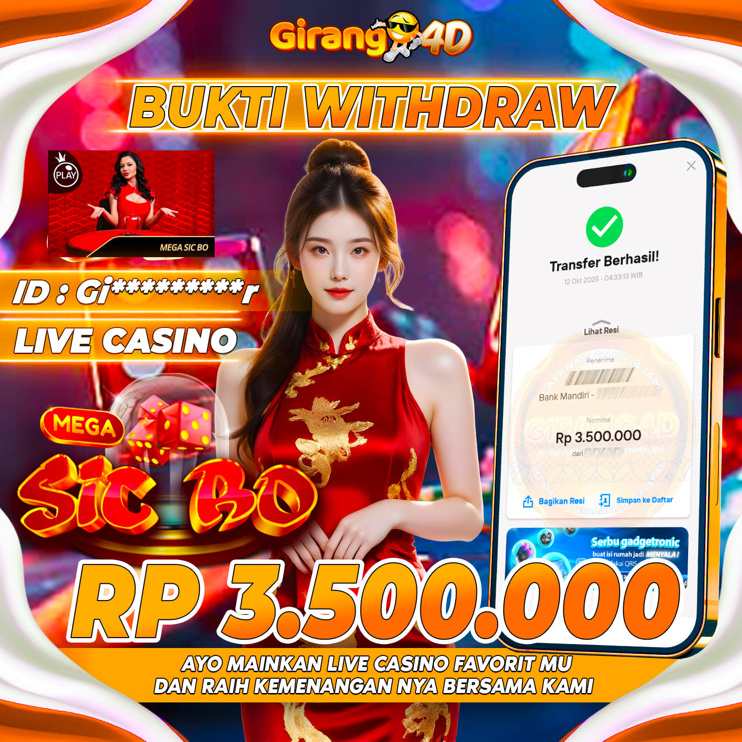 GIRANG4D Bukti Kemenangan LIVE CASINO MEGA SICBO