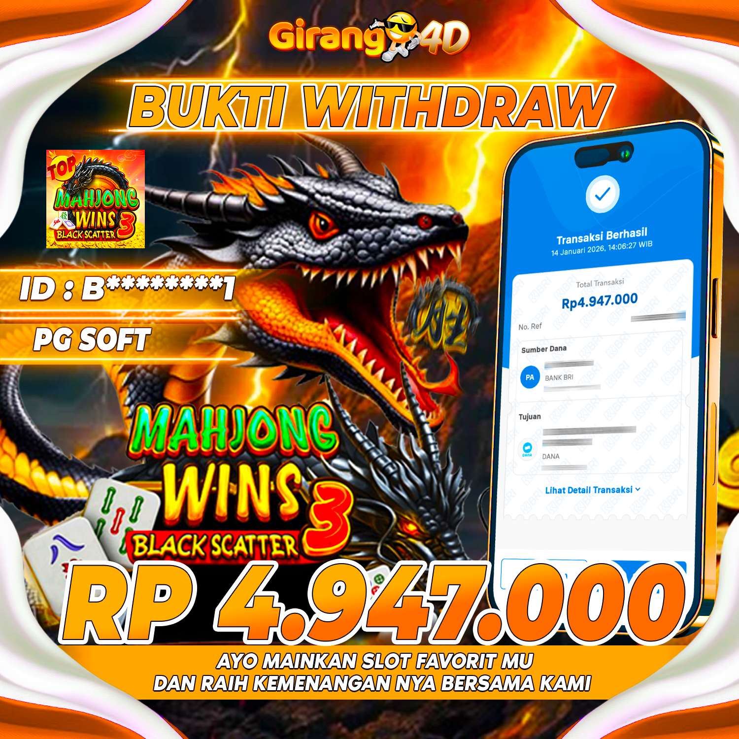 Selamat Kepada Id : B**********1 Atas Withdraw Rp. 4.947.000 Hari ini. Ditunggu Withdraw Selanjutnya dan ajak juga teman temannya bergabung di GIRANG4D