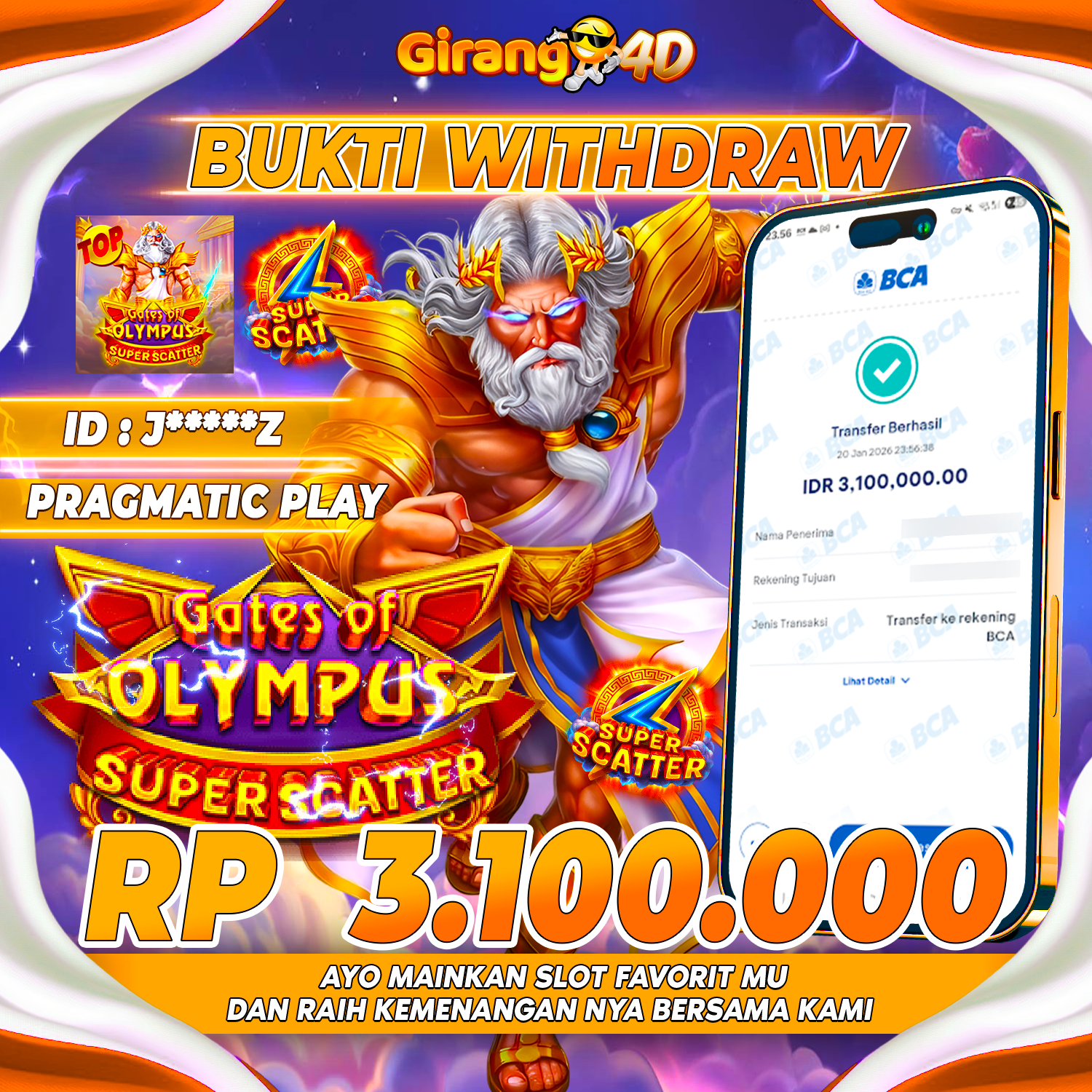 Selamat Kepada Id : J*****Z Atas Withdraw Rp. 3.100.000 Hari ini. Ditunggu Withdraw Selanjutnya dan ajak juga teman temannya bergabung di GIRANG4D