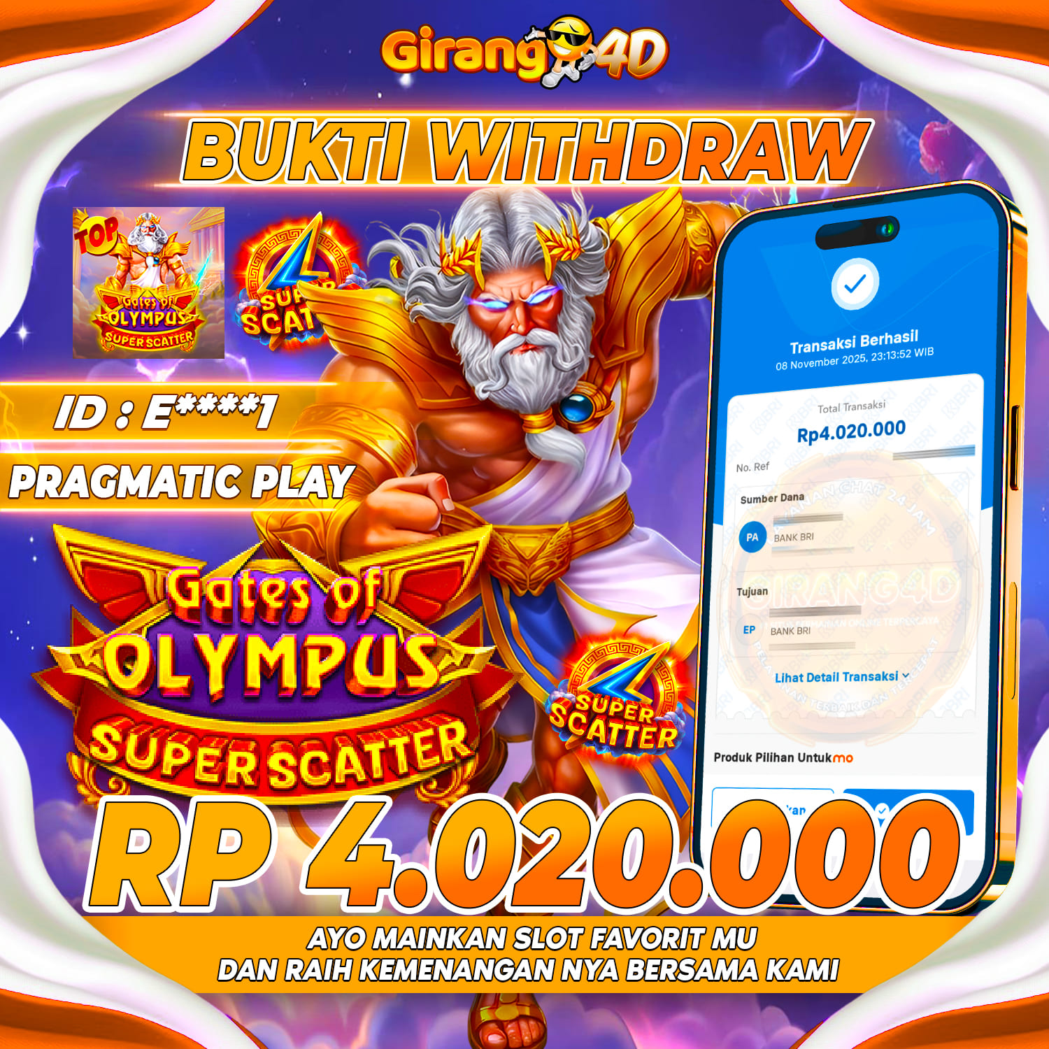 GIRANG4D Bukti Kemenangan SLOT GATES OF OLYMPUS SUPER SCATTER