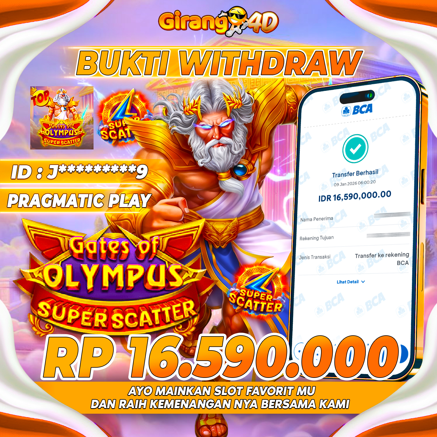 Selamat Kepada Id : J*********9 Atas Withdraw Rp. 16.590.000 Hari ini. Ditunggu Withdraw Selanjutnya dan ajak juga teman temannya bergabung di GIRANG4D