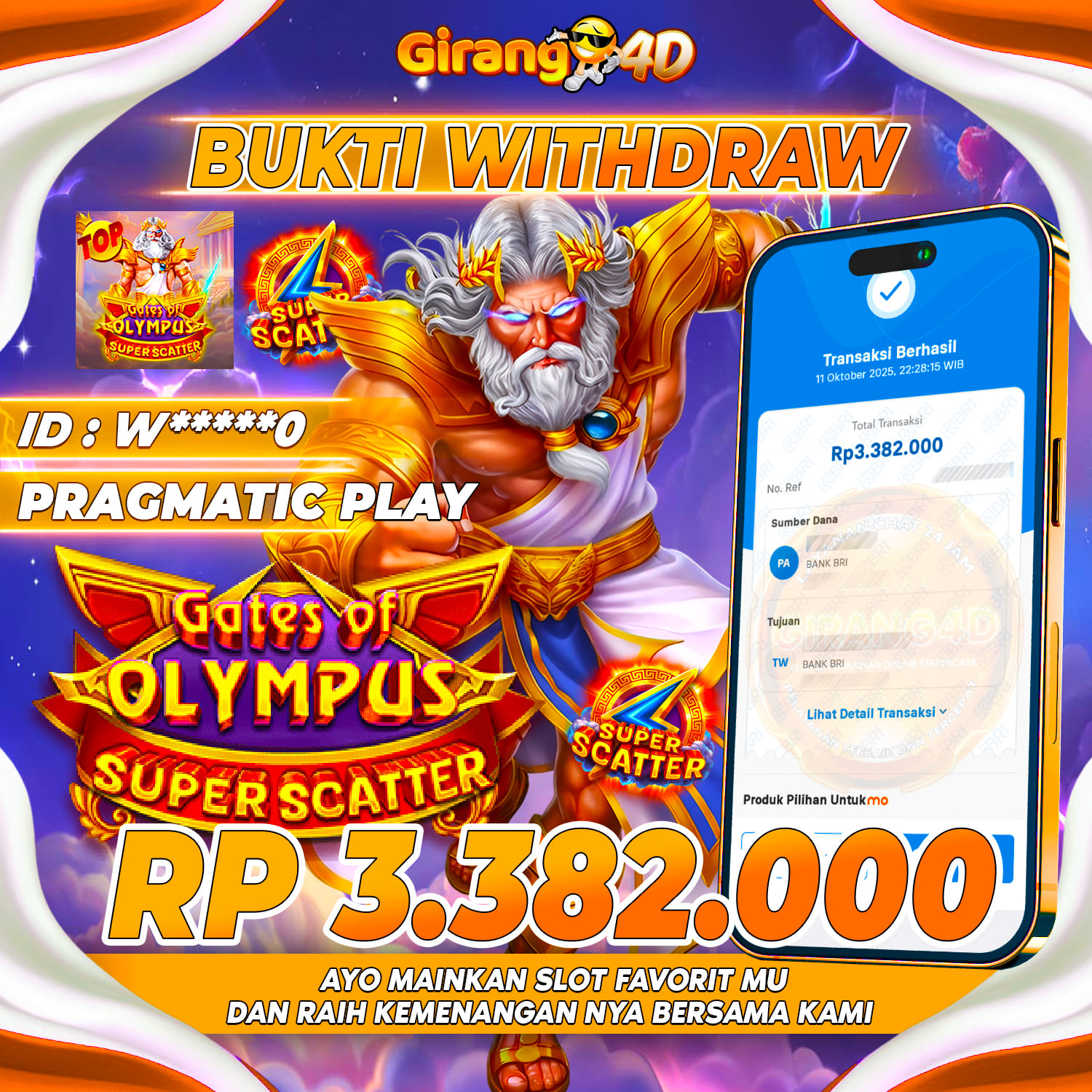 Selamat Kepada Id : W******0 Atas Withdraw Rp. 3.382.000 Juta Hari ini. Ditunggu Withdraw Selanjutnya dan ajak juga teman temannya bergabung di GIRANG4D