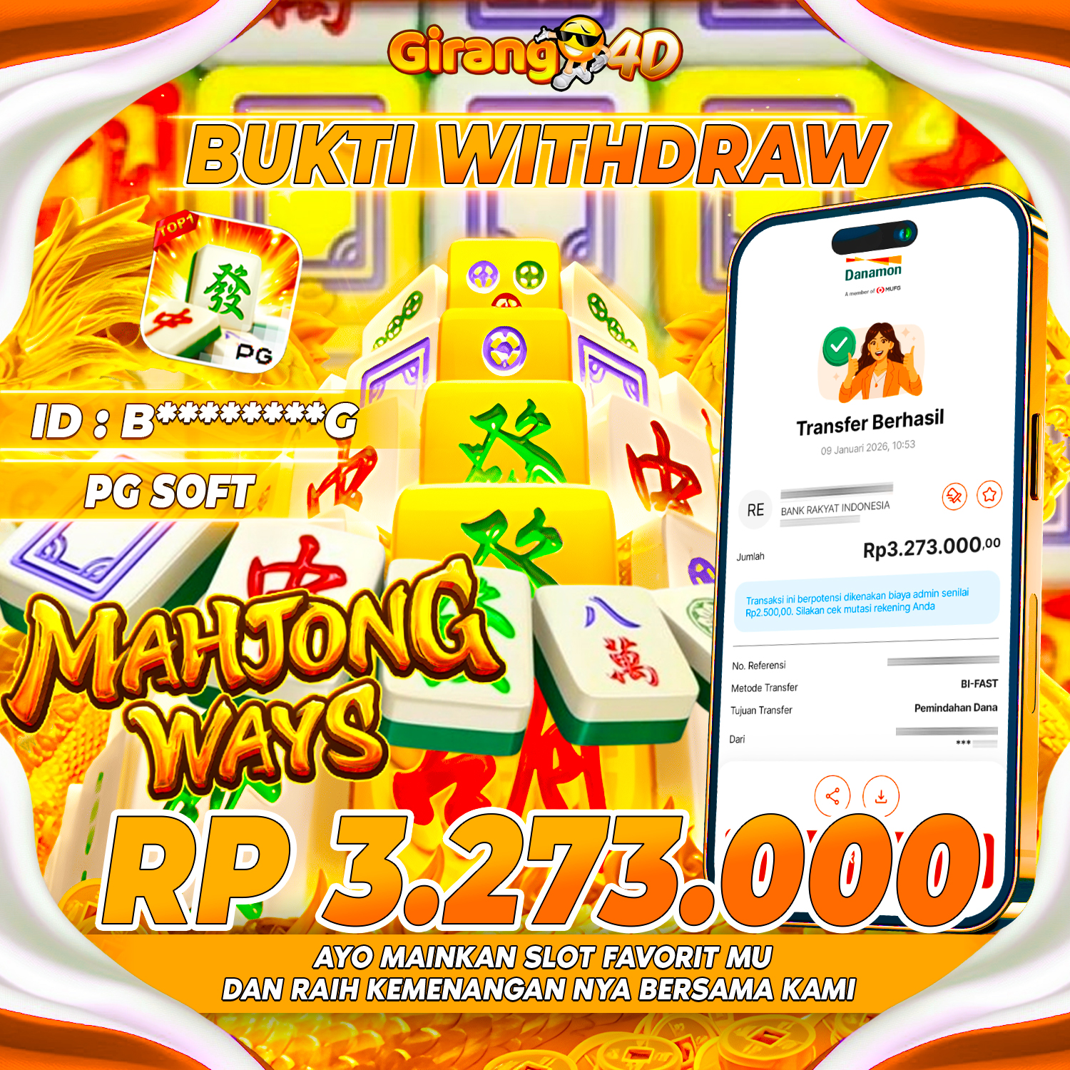 Selamat Kepada Id : B*******G Atas Withdraw Rp. 3.273.000 Hari ini. Ditunggu Withdraw Selanjutnya dan ajak juga teman temannya bergabung di GIRANG4D