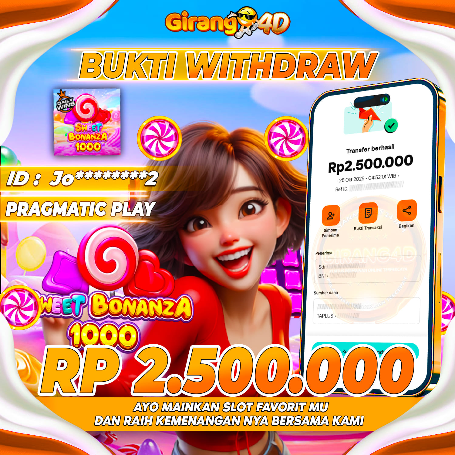 Selamat Kepada Id : Jo********2 Atas Withdraw Rp. 2.500.000 Juta Hari ini. Ditunggu Withdraw Selanjutnya dan ajak juga teman temannya bergabung di GIRANG4D