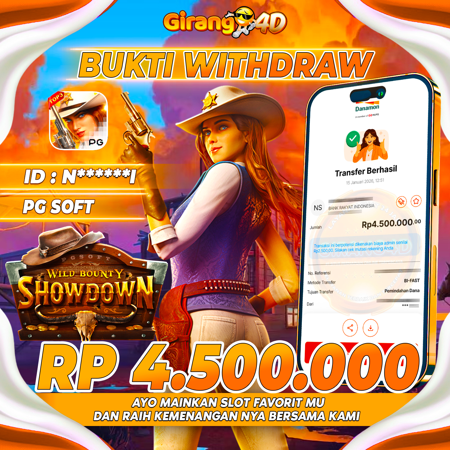 Selamat Kepada Id : N******I Atas Withdraw Rp. 4.500.000 Hari ini. Ditunggu Withdraw Selanjutnya dan ajak juga teman temannya bergabung di GIRANG4D