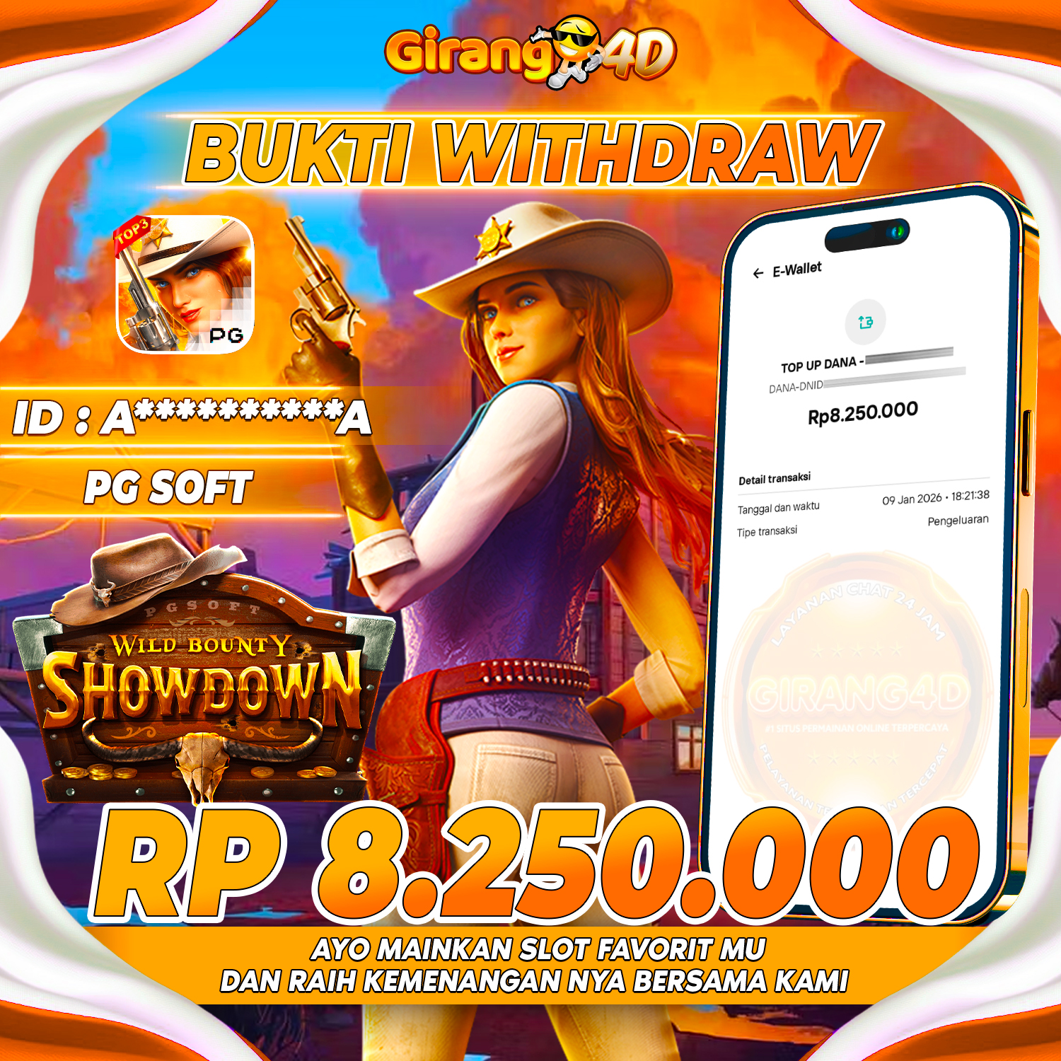 Selamat Kepada Id : A**********A Atas Withdraw Rp. 8.250.000 Hari ini. Ditunggu Withdraw Selanjutnya dan ajak juga teman temannya bergabung di GIRANG4D
